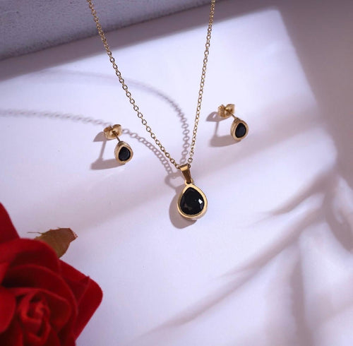 18-Inch Black Stone Gold-Colored Chain – Electroplated & Adjustable